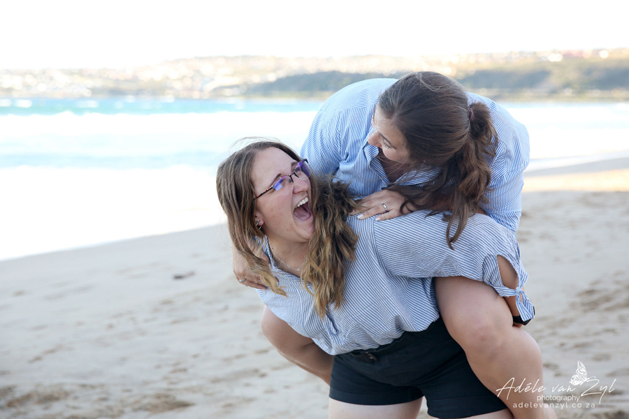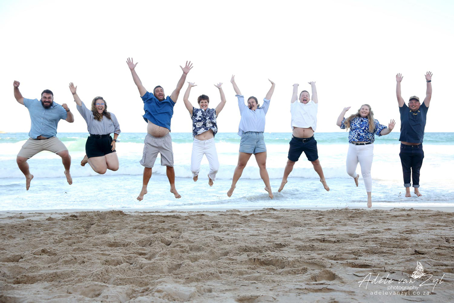 Loraine and Jason on their honeymoon, having lots and lots of fun on the beach with their family.